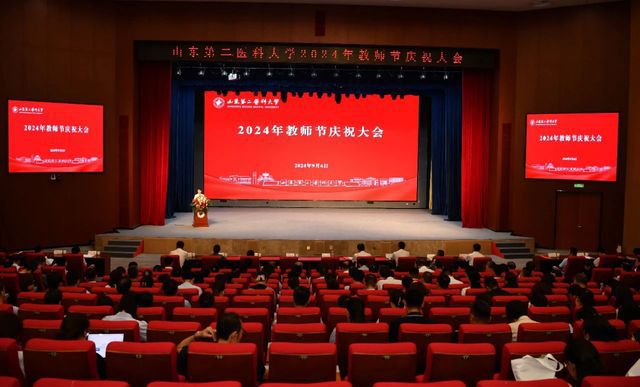 躬耕教坛育桃李,金秋硕果慰园丁。9月6日下午,学校2024年教师节庆祝大会在浮烟山校区文体活动中心报告厅隆重举行。校长管英俊为获奖师生代表颁奖并讲话,党委领导班子成员卢国华、王承高、梁淑娟、孔令军、成敏、田玉胜、王世群、刘汉波出席庆祝大会并为师生代表颁奖,附属济南市第五人民医院党委书记安健、附属淄博市第一医院院长郑建彬、附属高密市人民医院院长石如荟、附属安丘市人民医院院长刘建龙等参加大会。