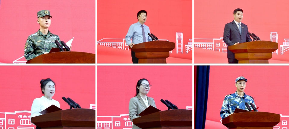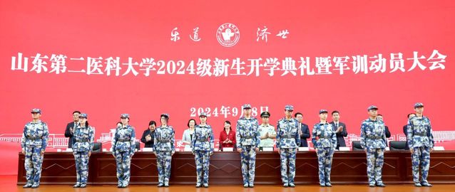 武警潍坊支队带队教官赵泽星,校友代表、首都医科大学附属北京世纪坛医院薛新颖教授,教师代表、管理学院井淇教授,在校生代表、麻醉学院2022级麻醉学专业硕士研究生鄂思含同学,新生代表、公共卫生学院2024级博士研究生李牧同学,新生代表、第一临床医学院2024级临床医学专业本科生孙逸博同学分别发言。