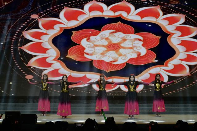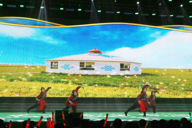 民族舞蹈串烧《博克颂》《彩云之南》《石榴花开》由十多位能歌善舞的女生演绎,表达了各族儿女像石榴籽一样紧紧地拥抱在一起,共祝祖国母亲75岁生日快乐的美好心愿。