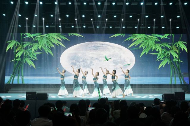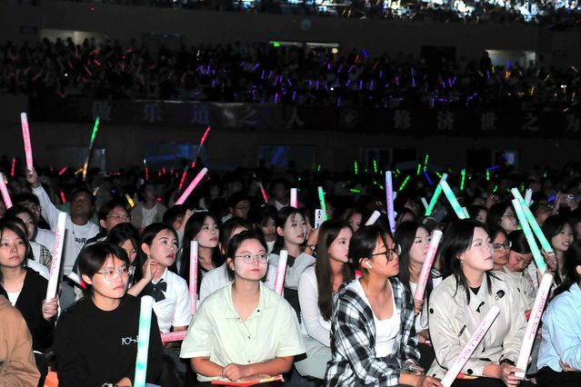 由校园歌手大赛参赛选手、2024年新进教职工和新生联袂带来的歌曲联唱《我们的时光》《希望你被这个世界爱着》《大城小爱》《弯弯的月亮》《山河》震撼登场,瞬间点燃了全场的热情,观众们手中的荧光棒随着音乐摇摆,共享这份音乐的快乐。