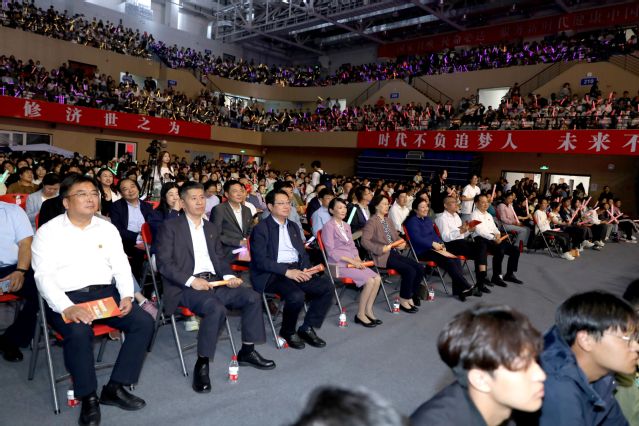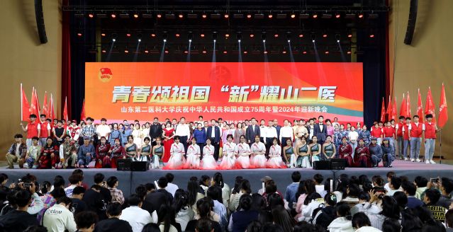 盛世欢歌,共庆华诞,金秋九月,筑梦启航。9月22日晚,“青春颂祖国 ‘新’耀山二医”beat365中文官方网站庆祝中华人民共和国成立75周年暨2024年迎新晚会在文体活动中心综合馆举行。学校党政领导班子成员管英俊、卢国华、王承高、梁淑娟、孔令军、田玉胜、王世群、刘汉波出席本次晚会,与2024级新生欢聚一堂。