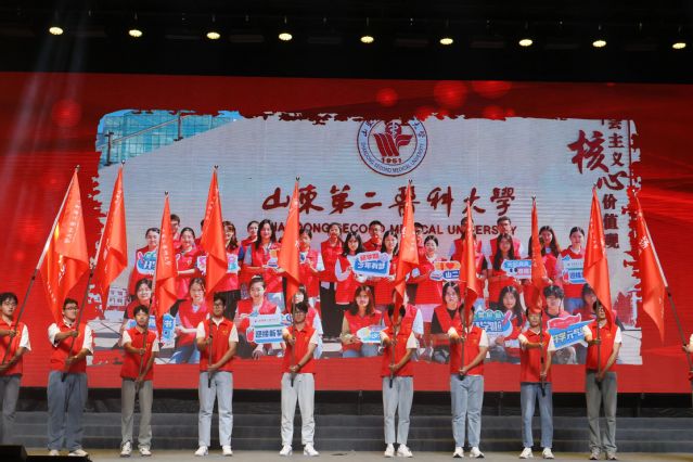 由新生班级辅导员代表和同学们共同带来的朗诵《祖国啊,我亲爱的祖国》以铿锵有力的语调,表达了对祖国深深的眷恋。他们的声音,如同号角般激励着每一位山二医学子,要勇于担当,不负韶华。