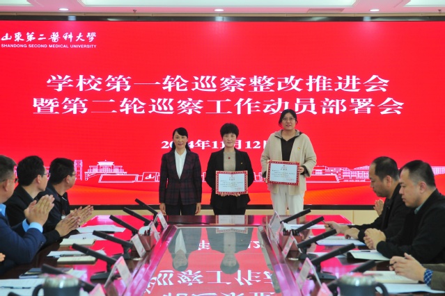 11月12日,学校召开第一轮巡察整改推进会暨第二轮巡察工作动员部署会,统筹推进校党委第一轮巡察整改工作,动员部署第二轮巡察工作。党委副书记、校长管英俊讲话,并为第二轮巡察组组长颁发授权书。党政领导班子成员卢国华、王承高、田玉胜、王世群、刘汉波出席会议。会议由纪委书记、监察专员、党委巡察工作领导小组副组长孔令军主持。