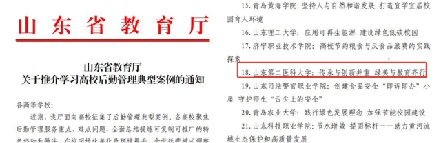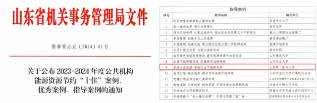 近日,山东省教育厅公布《关于推介学习高校后勤管理典型案例的通知》,beat365报送的《传承与创新并重绿美与教育齐行》案例获推介学习;另外,beat365报送的《抓好示范创建争做行业节能排头兵》案例,被山东省机关事务管理局评为公共机构能源资源节约指导案例。