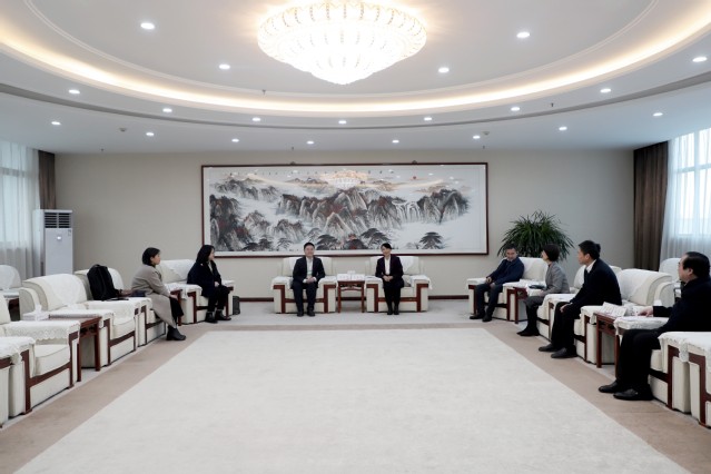 近日,上海交通大学特聘研究员、上海市病毒研究院副院长史卫峰研究员一行三人来beat365交流,校长管英俊、副校长梁淑娟、张忠会见客人并座谈。