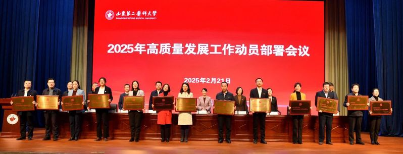管英俊在讲话中指出,2024年学校成功获批博士学位授予单位,实现了学校办学层次和育人水平的全面提升,具有里程碑意义。她强调,2025年是面向十年建成教育强国、教育强省的全面布局、高位推进之年,是学校“十四五”规划全面收官、“十五五”规划谋篇布局的关键之年,也是学校全面强化博士学位授予单位建设、启航高水平医科大学新征程的奋进之年。为进一步推动学校各项任务高标准起步、高效率推进、高质量落实,要在四个方面做好2025年重点工作任务。一是聚力战略思维引领,激发争先进位的拼劲。要探索形成一体推进教育发展、科技创新、人才培养的制度机制,让学校高质量发展优势更优、特色更特、强项更强。二是聚力改革创新赋能,鼓足攻坚突破的闯劲。要站在新时代的风口去捕捉机会、抢抓机遇,以改革开路、用创新闯关,不断提升全链条创新支撑效能。三是聚力真抓实干作风,保持一抓到底的狠劲。要拿出不达目的绝不罢休的狠劲、韧劲,真正把思路变成决策、把决策变成措施、把措施变成行动、把行动变成成效。四是聚力安全底线保障,坚持久久为功的韧劲。要从总体国家安全观出发,筑牢安全底线,做到肩上有责、心中有数、手中有招。