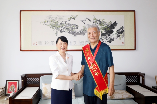 校领导深入老党员家中,与他们亲切交谈,简要通报学校当前阶段取得的重点突破与发展态势,详细了解他们的身体状况、生活起居和实际需求,并亲手为“光荣在党50年”的老党员颁发纪念章,感谢他们为党的事业和学校建设发展所作出的卓越贡献。