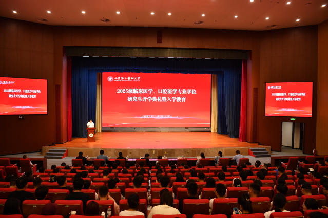 李士保向加入山二医大家庭的605名研究生新同学表示祝贺与欢迎,介绍了学校的办学历史与学科发展情况,提出了对新生们的三点期许:一要坚定理想信念,厚植家国情怀;二要弘扬“乐道济世”,践行医学使命;三要培养创新精神,提升科研能力。