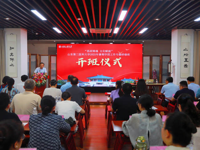 开班仪式上,李士保在动员讲话中强调,学校高度重视辅导员队伍建设,此次专题研修班是推动学团工作发展、加强育人骨干队伍建设的关键举措。面对新时代学生工作提出的新要求,学工队伍要具备危机意识,通过持续学习提升解决学生问题的能力。他向参训学员提出要求:一是牢记总书记嘱托,勇扛时代重任,以“六个要”标准为指引,坚守 “为党育人、为国育才”初心,当好学生成长引路人;二是汲取圣贤智慧,涵养为师品德,立足孔子故里,践行“其身正”“有教无类”育人理念,以高尚师德与爱生情怀走进学生内心;三是聚焦核心职责,打造育人品牌,锚定工作职责,创新方法载体,培育具有山二医特色的学团品牌,提高思政育人辨识度与竞争力,为学校高质量发展贡献力量。