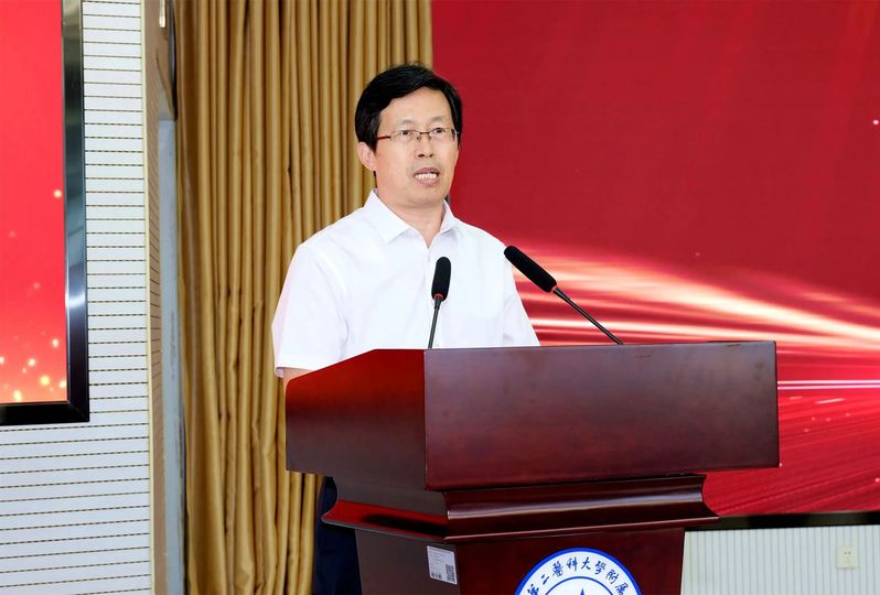 张建华在致辞中代表学校向全体医务教职员工致以诚挚的问候和崇高的敬意,高度肯定了医院建院五十年来始终与学校血脉相连、休戚与共,深刻践行“医教相长、协同发展”的核心理念,成功探索出“以教促医、以医强教”的特色发展之路,成为了区域医疗卫生服务体系的中流砥柱。站在建院五十周年新起点,张建华对医院发展提出新期望。一是深化医教协同,打造卓越医学人才培养新高地。紧扣“健康中国”战略需求,构建具有鲜明特色的高质量医学人才培养体系,持续强化临床教学主体地位,构建更加紧密、高效、可持续的协同育人长效机制,着力培养更多优秀的、高素质医学专门人才。二是强化创新驱动,构筑医教研协同发展新优势。集中力量建设具有区域引领力的高水平临床研究中心和重点实验室,精准引育学科领军人才和高水平创新团队,全面加强博士学位授权学科建设,推进医疗链、教学链、创新链、人才链、产业链深度融合。三是厚植仁心仁术,涵养医学人文精神新生态。深入挖掘五十年办院兴医治学经验,传承践行“仁心妙术、佑民济世”的院训精髓,大力弘扬以张军桥同志为先进典型的崇高职业精神,让“大爱无疆、生命至上”成为内心坚守、成为行动自觉、成为价值追求,让救死扶伤、悬壶济世的医学圣火在附属医院代代相传、发扬光大。