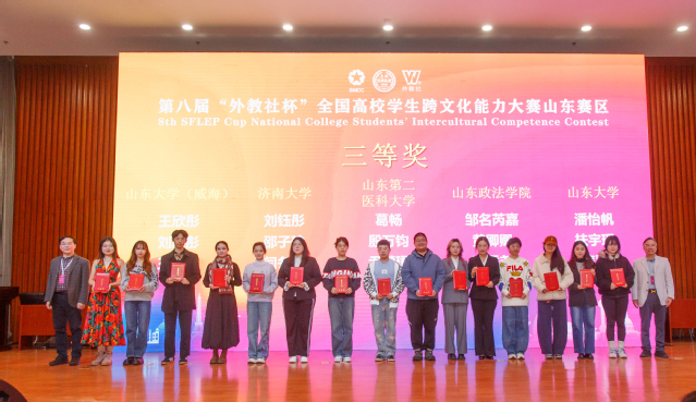 本届“外教社杯”全国高校学生跨文化能力大赛(SNICC)山东省赛由山东省教育厅高等教育处指导,助力山东省高校探索国际化人才培养模式创新,提升大学生跨文化交际能力,服务“促进文明交流互鉴、讲好中国故事、传播好中国声音”国家战略,为当代青年学子增强跨文化意识、锻炼跨文化能力提供一个绝佳平台。