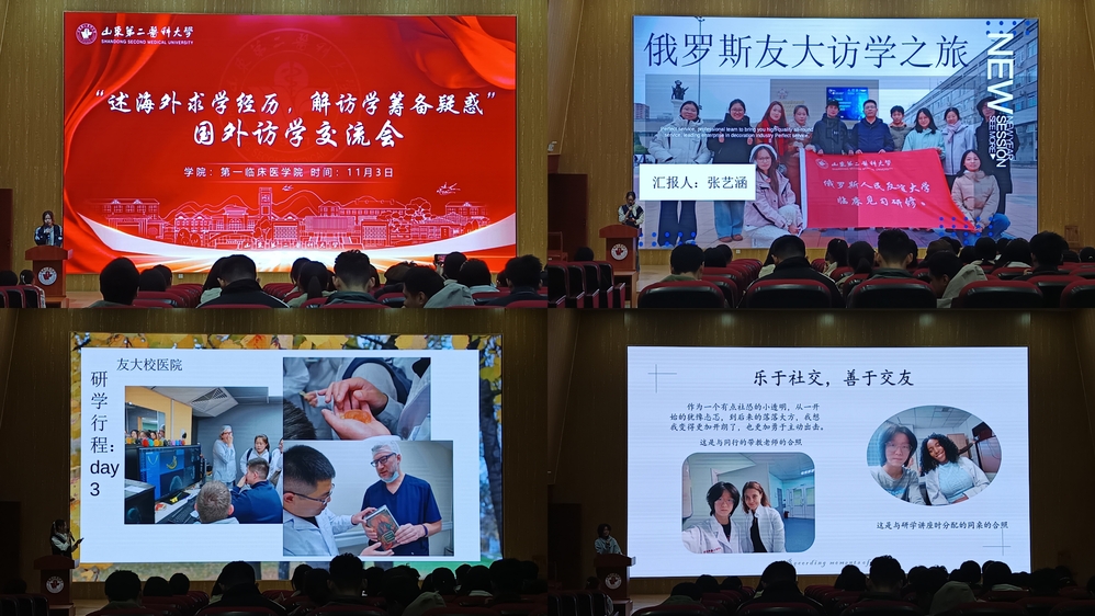 为拓展学生国际视野,激发深造热情,11月3日,第一临床医学院于思政虚拟仿真中心(B208)举办海外访学经验交流会,活动特邀参与俄罗斯短期交流项目的2025级张艺涵、张凌轩两位同学担任主讲,围绕跨文化学习体验展开深度分享。
