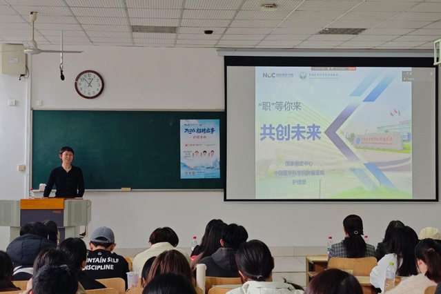 为拓宽毕业生就业渠道,搭建高质量就业平台,11月6日,护理学院邀请中国医学科学院肿瘤医院来校开展护理专场招聘宣讲会。学院院长孟庆慧、党总支副书记于颖荣,学工办辅导员与学生代表共同参加此次活动。